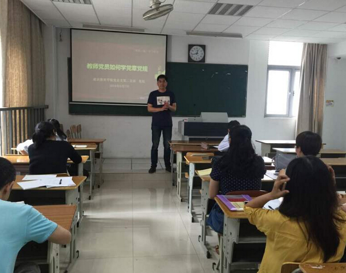 在本支部党课上,夏松老师围绕“教师党员如何学习党章党规”这个问题做了精彩的讲解,他不仅跟大家分享了十条学习党章方法、三大学习党规策略,并且结合教师角色和自我学习实践总结了教师在学习中“自学为主、率先垂范、讨论交流”的三种途径;贾宗英老师围绕《习近平总书记系列重要讲话读本(2016年版)》之“关于实现中华民族伟大复兴的中国梦”部分,给大家详细地讲解了“中国梦的提出、中国梦的本质、中国梦的实践路径”。她指出,为了实现中国梦,我们必须脚踏实地,“同心、同向、同行”去践行中国梦。