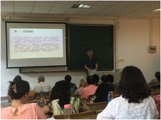 接下来,金陵诗社名誉社长、《增订词谱》的编著者董学增先生做了“词的起源说”主题报告。报告中阐述了词的产生背景、发展历程,回答了“词如何分谱”,“谱依何分体”等学术界一直困扰的问题,最后得出“词谱的混乱,有不少来自词的‘同谱异名’的现象”的结论。通识教育学院教师分别与金陵诗社的诗人进行交流,双方皆表示在活动中受益匪浅,认为董学增先生演讲内容学术性强,可供诗词研究参考价值极高。