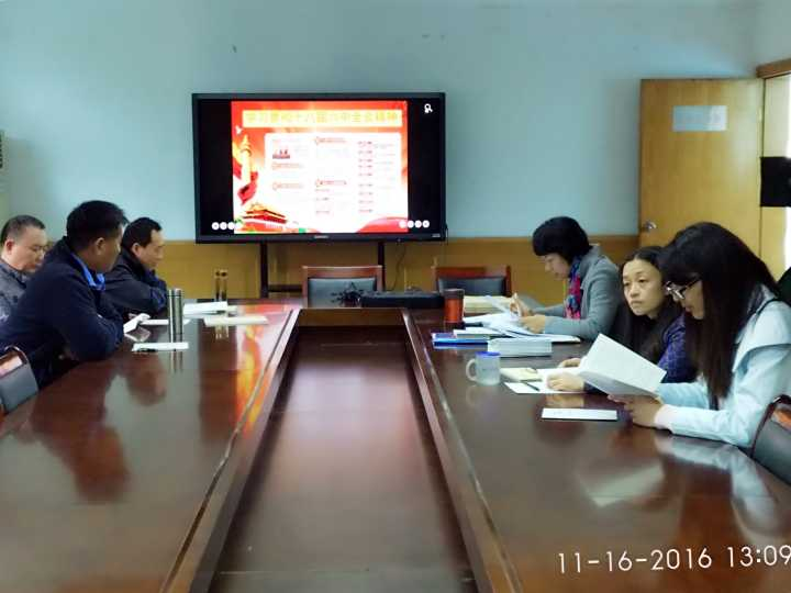 11月16日下午1点,通识教育学院党总支第一党支部在古平岗校区411会议室召开了支部党员大会,学习贯彻党的十八届六中全会精神。会上,支部书记姚琴芬带领大家解读了六中全会公报的十二大关键词,大家一起研读了《关于新形势下党内政治生活的若干准则》和《中国共产党党内监督条例》。