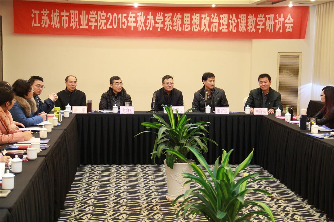 为全面推进全省办学系统思想政治理论课课程教学改革,进一步加强新版教材课程研究,促进教学经验交流和教学成果分享,思政教研部于12月12日-13日在南通召开了全省办学系统思想政治理论课教学研讨会。南通办学点副校长谢新安、教务处处长刘海涛、我校思政教研部主任束正煌、书记史灿方、思政教研部相关教师和来自全省办学系统的教研室负责人、课程责任教师及骨干教师近30人参加了会议。会议由我校思政教研室主任盛一平主持。
