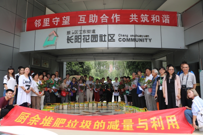 6月29日上午,由南京玄武环境文化促进会和江苏绿色之友主办、江苏城市职业学院通识教育学院、校团委及长阳社区共同承办的“资源再利用,厨余垃圾堆肥减量进长阳,践行绿色生活”环保主题活动在长阳花园举办。活动在学校与社区共建的友谊林一一桃园开展,在社区张爱琴主任及通识教育学院张玉兰老师饱含深情回顾共建历程中拉开帷幕。本次主题活动包括主办方的波卡西堆肥技术介绍,主办方与社区签约,学校师生堆肥过程示范,堆肥环保之家结对,学生进家庭指导居民堆肥等多项议程。活动以6月29日为起点将持续4个月,以结对的21户环保之家为行动主体,43名学生将定期或不定期进入结对家庭跟踪指导、记录、答疑,并报主办方。该活动得到了校资源建设中心的大力支持。