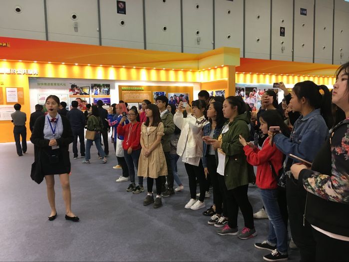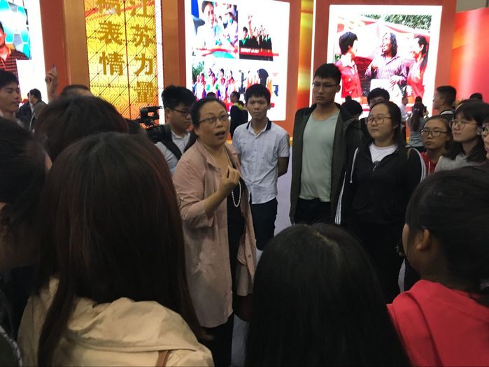 2017年10月9日到13日,南京国际博览中心迎来了江苏城市职业学院11个专业共计312名学生,他们是在张玉兰老师的带领下来这里开展“认识江苏”思政实践活动的。张老师将《思想道德修养与法律基础》实践教学课“移位”到“砥砺奋进的江苏”大型主题图片展现场,学生们走出学校教室,走进开放式社会大课堂,在一幅幅高清图片、一张张直观图表、一个个实物模型前驻足观看,纷纷拍照;在VR全景图和视频体验区,大家戴上VR眼镜,开启“360度全景体验”模式,感受江苏13座城市的独特魅力;在互动区,同学们不仅在背景墙前留影,还在签到屏上争先留下祝福签名,为能见证江苏的发展感到自豪。