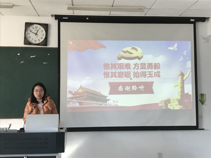其次,陆峰老师与钱小卉老师通过“教师讲党课”的形式,带领全体党员深入解读十九大报告重点,领悟党的十九大精神实质。钱小卉老师以“不忘初心跟党走”为题,从十九大报告基本内容入手,为党员们重点解读报告要髓部分,宣讲了党的十九大精神实质,探讨了如何做到不忘初心跟党走,最后还与党员们分享了自己近期学习心得;陆峰老师从“十九大简介及重要意义”讲起,为我们重点解读了中国特色社会主义进入新时代的“一个历史使命与四个伟大”,新时代坚持和发展中国特色社会主义的基本方略以及战略安排,最后与党员们探讨了作为教师党员,如何不忘初心,做一个合格党员,永远跟党走。