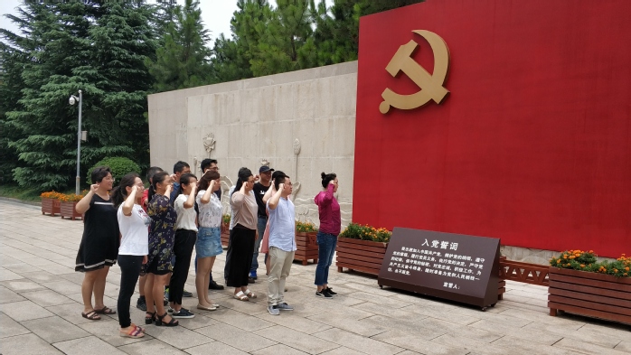 坚守初心,重温入党誓词。为从历史中汲取力量,不忘初心、牢记使命、永远奋斗,支部党员来到了南湖革命纪念馆,沿着早期共产党人的足迹,探寻我们党的精神密码。在革命纪念馆展馆“开天辟地”、“光辉历程”单元里,支部党员陆洋、杨斌同志利用他们专业特长现场为党员们上了一堂生动的党课;在宣誓墙前,支部书记杨丽带领支部党员及预备党员吴杰同志一道举起右拳、庄严宣誓“我志愿加入中国共产党,拥护党的纲领,……”字字坚定,句句铿锵,表达了党员们永守初心,信念如磐的决心。