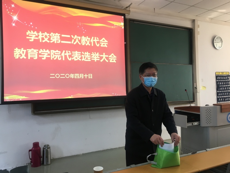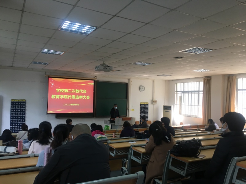 根据《关于做好江苏开放大学(江苏城市职业学院)第二次教职工代表大会有关选举工作的通知》文件精神,教育学院于2020年4月10日上午在定淮门东校区教学楼1-1阶梯教室召开学校第二次教代会代表选举大会,校党委常委、纪委书记顾新华及全体教职工参加会议,会议由学院党总支书记俞金元主持。