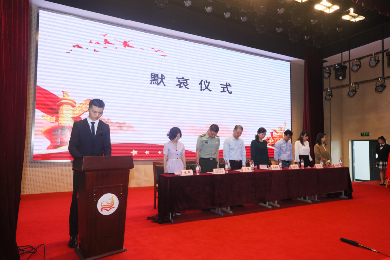 9月18日正值九一八事变89周年纪念日。上午10点,全市防空警报拉响。应天校区体艺馆406演播厅内,气氛庄严肃穆。学校党委副书记、副校长金丽霞,南京国防园景区主任任毅,南京警备区政治工作处卢遵候,教育学院院长束正煌,校团委书记尹星,校学生工作处副处长包慧君,南京国防园景区副主任张莉等带领学校学生代表与国旗班同学集体默哀,铭记英雄缅怀先烈,悼念遇难同胞。