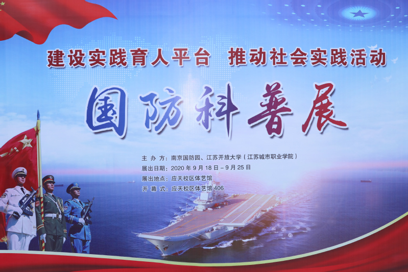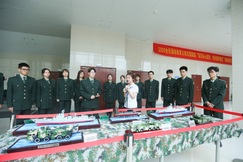 这是南京国防园与江苏开放大学共同举办“军民同心筑梦 共担强军重任”国防科普进校园活动暨国防教育实践基地挂牌仪式活动的现场的一幕。