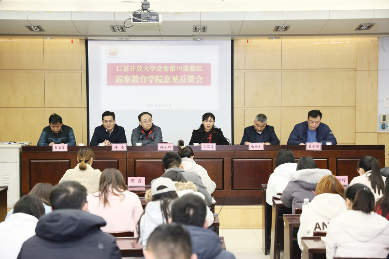 12月2日中午,党委第10巡察组在定淮门校区召开巡察教育学院意见反馈会,党委常委、巡察组组长金丽霞,党委常委、组织部部长韩承辉出席了会议,巡察组全体组员、纪委内设机构全体人员和教育学院全体教职工及学生代表参加了会议。会议由巡察办副主任黄金国主持。
