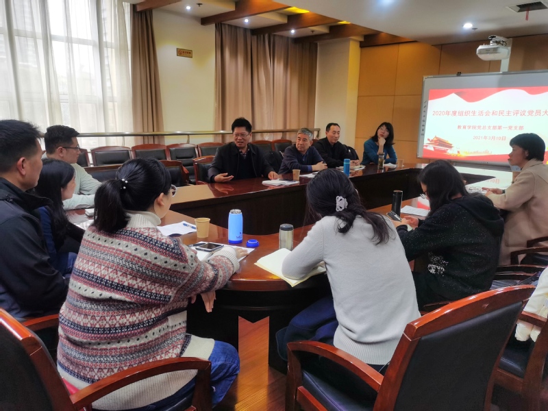 根据学校《关于召开2020年度组织生活会和开展民主评议党员的通知》要求,教育学院第一党支部于3月10日下午在定淮门校区第一会议室召开组织生活会和民主评议党员大会,会议由支部书记姚琴芬主持,支部全体党员参加。