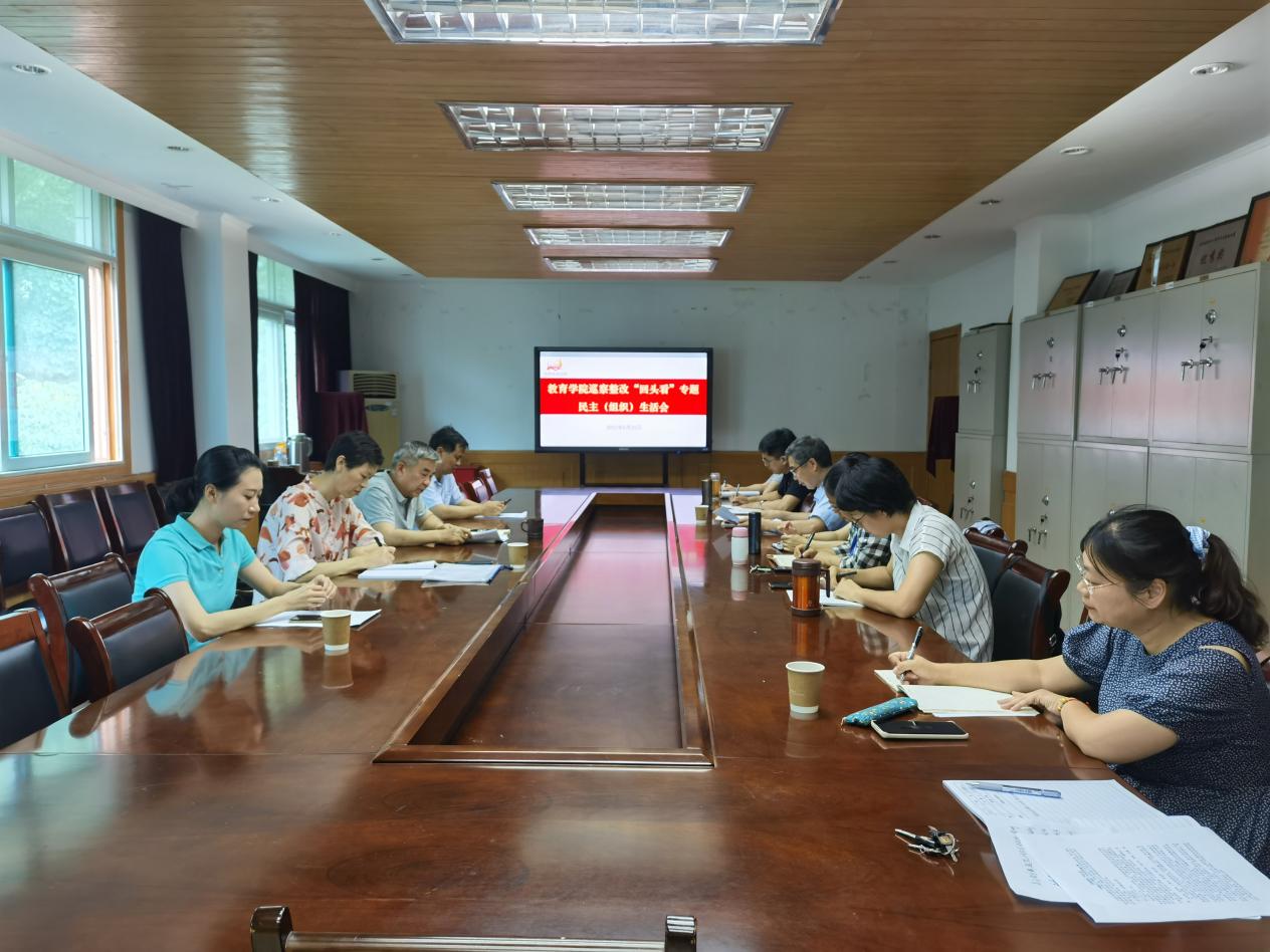 6月25日上午,教育学院在古平岗校区综合楼411会议室召开了巡察整改“回头看”专题民主(组织)生活会。会议由教育学院党总支部书记俞金元主持,督导组周霞同志现场督导指导,教育学院巡察整改小组全体成员参加。