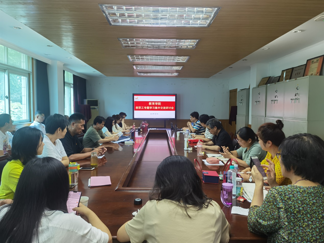 7月7日,教育学院召开教职工大会,专题学习贯彻习近平总书记在庆祝中国共产党成立100周年大会上的重要讲话精神。