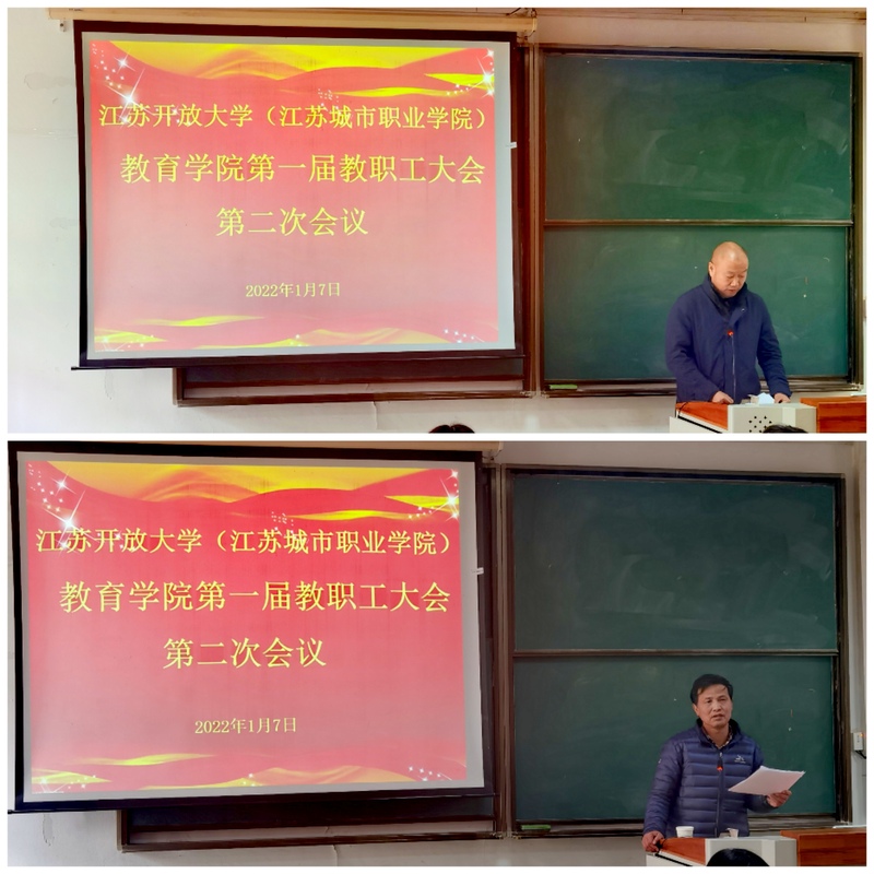 2022年1月7日下午,教育学院第一届教职工大会第二次会议在定淮门东校区召开。校党委常委、纪委书记顾新华出席会议,学院全体教职工参加了本次大会。大会由学院执委会主任、副院长何康主持。