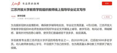 4月6日,人民日报新媒体报道我院线上指导学员毕业论文新闻。