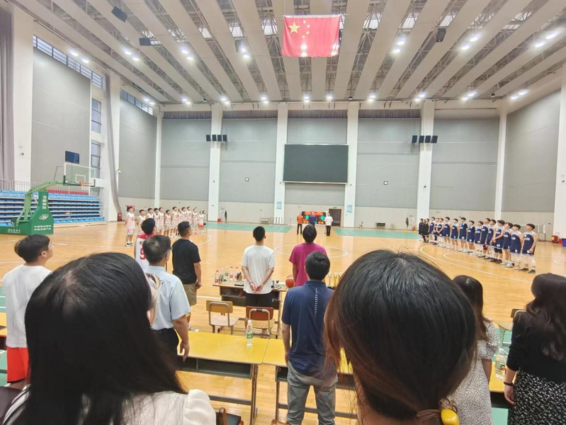 5月28日晚,学校第二届“飞跃杯”校园篮球联赛决赛在应天校区体艺馆正式拉开战幕,对阵双方为建筑工程学院工程管理系队与商学院队。比赛开始前,举行了开场仪式,宣告员介绍出席本次比赛的运动员、教练员、嘉宾、裁判员等。随后,全体人员奏唱国歌。