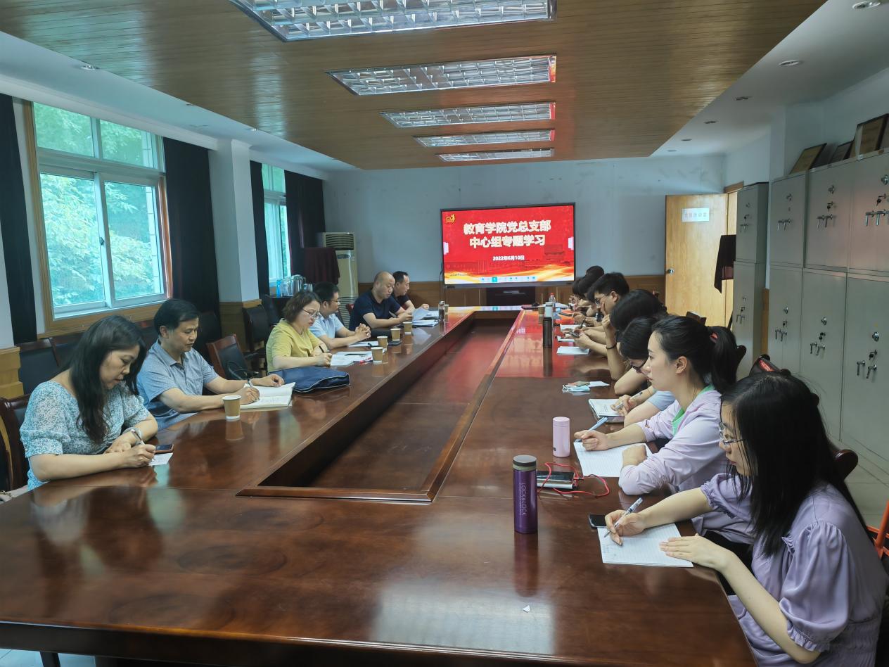 2022年6月10日下午,教育学院党总支理论学习中心组在东校区综合楼南楼411会议室召开专题交流学习研讨会,本次会议主题为“全面贯彻新发展理念,高效推动学校‘三三三’工程”。会议由学院党总支书记罗殷主持,学院党总支理论学习中心组全体成员参加会议。