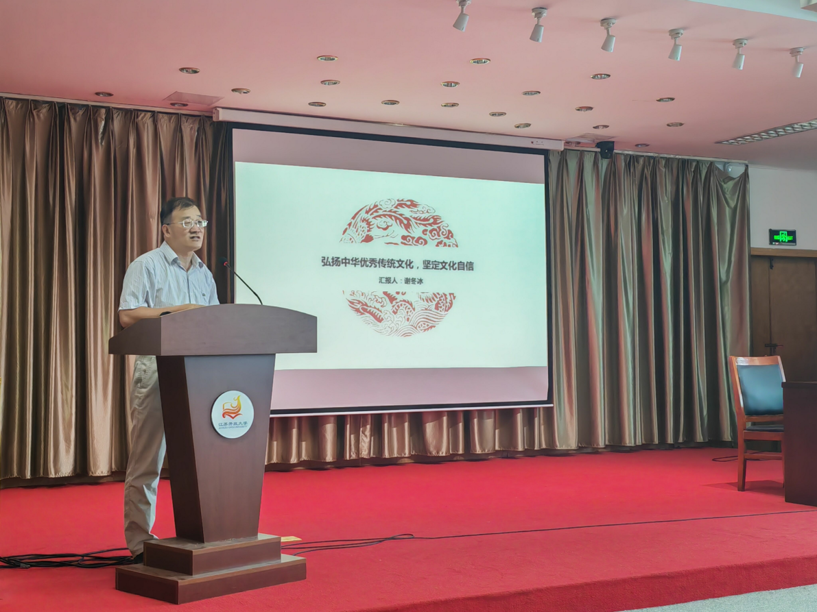本次学习,学院党总支特意邀请图书馆馆长谢冬冰教授为全院教职工作了题为《弘扬中华优秀传统文化,坚定文化自信》的专题讲座。谢馆长从弘扬优秀传统文化的时代意义、神话中人类文化的起源、中华优秀传统文化精神、习近平总书记对优秀传统文化的弘扬等方面展开详细解读。谢馆长的讲座让与会人员既领略到了有着深厚文化底蕴的学者的文化风采,更能感受到民族文化建设者的理想情怀。谢馆长还特别指出传承中华优秀传统文化首先要传承其中的道德精神,激励参加学习的教职员工们在教育事业中坚持立德树人,传承发扬贯穿于中华文化血脉中的尚德精神。