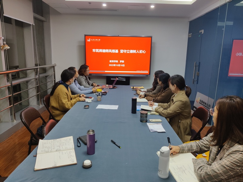 罗殷以《筑牢师德师风根基坚守立德树人初心》为题,从习近平对教师队伍的殷切期望、新时代师德师风建设的要求、违反教师职业行为准则的警示案例和加强师德师风建设的着力点四个方面展开,对新入职教职工进行师德师风主题教育。她强调,为贯彻落实新时代教师职业行为十项准则的要求,一是要突出政治标准的首要地位;二是要明确职业道德的高线要求;三是要丰富师德师风的深刻内涵;四是要拓展学习践行的实践路径。