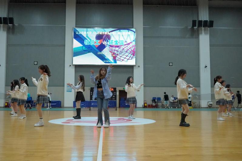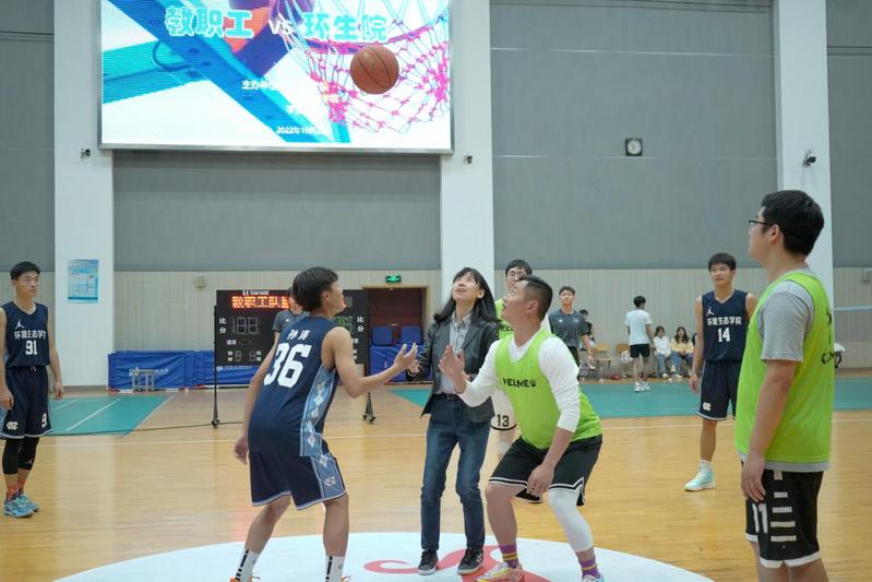 11月9日晚,校教职工篮球队与环境生态学院学生篮球队的联谊赛在应天校区体艺馆成功举办。20多名队员、100多名现场观众以及裁判员、啦啦队员等齐聚一堂,一起度过了一个愉快的夜晚。