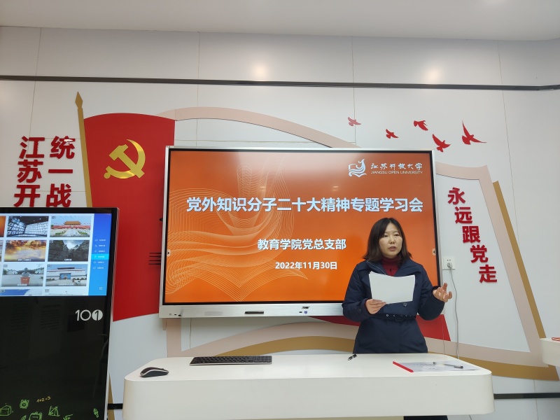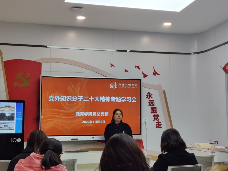 为全面深入学习贯彻党的二十大精神,贯彻落实习近平总书记关于做好新时代党的统一战线工作的重要思想,教育学院于2022年11月30日下午在定淮门校区同心教育实践基地召开了党外知识分子党的二十大精神专题学习会。会议由学院党总支书记罗殷主持,学院党总支部统战委员、支部统战委员、民主党派成员、非党员高级知识分子和少数民族教师代表等参加。