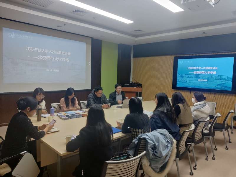为切实推进人才强校战略,贯彻学校2023年党政工作要点,进一步加大人才引进力度,3月2日下午,江苏开放大学教育学院院长孙旭带队前往北京师范大学举行人才招聘宣讲会,学前教育系主任夏松、院办工作人员冯洁玉随同参加,设计学院、商学院派相关人员共同参会。