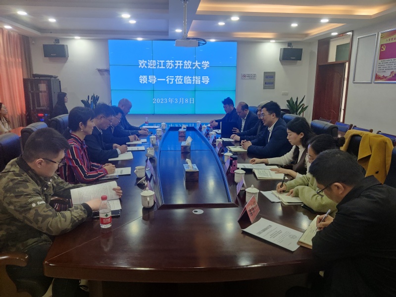 调研组还深入涟水开放大学、淮安开放大学了解招生办学情况。涟水开放大学介绍了“涟水千人计划”实施情况,首批招收的316名村(社区)干部学员,今年春已有223名大专学员、38名本科学员(其中12人达到授予学士学位条件)顺利毕业。淮安开放大学汇报了招生办学过程中亟需我校解决的有关问题。