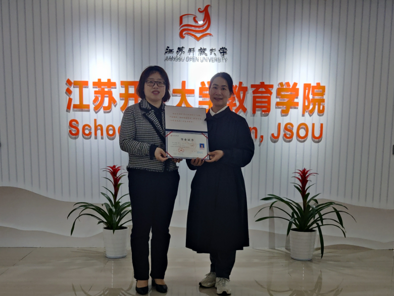 罗殷对邵书敏表示祝贺,对她克服重重困难、妥善解决工学矛盾的学习精神给予充分肯定,并对她提出两点希望:一是坚持终身学习,学以致用,把在江苏开放大学学前教育专业所学到的知识运用到日常工作和学习上;二是脚踏实地,继续在教师行业发光发热,保持工作热情,在平凡的岗位上做出不平凡的业绩。