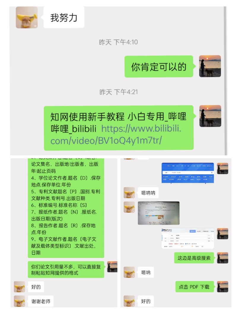 大部分学员都是第一次使用知网,由于不熟悉平台浪费了大量时间。为了把服务送到学员心坎上,冯洁玉连线学员,在线指导她搜索并下载论文直至成功,并提供论文写作的小技巧。学员表示受益匪浅,十分感谢学院的帮助和老师的指导。