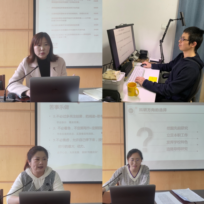 学院国家社科基金项目主持人、省社科项目主持人、省高校自科项目主持人、省高校哲社项目主持人,共4位教师分别进行了科研工作分享。郑超围绕“加强科研创新,促进学院事业高质量发展”和大家一起分享了科研工作的重要性、从事科学研究的难处以及做好科研的个人体会;白新蕾从“体育部科研工作推进方法”主题出发,围绕科研方向选择、科研成果突破、科研成果推进、科研成果呈现发表了见解;王继瑛从“科研的苦与乐”角度出发,讲到从事科研要苦事乐做、难事巧做,勿过多关注结果、勿着急、勿焦虑,多加强自我建设、外部环境和同伴支持;李春燕从成功获立国家社科基金后期资助项目出发,分享了此项目申报的注意事项、使用的研究方法以及科研工作的心得体会。