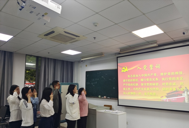 最后,支部党员重温入党誓词。重温入党誓词,提醒所有党员牢记自己入党时的初心,牢记肩负的使命,时刻以党员的标准严格要求自己、时刻以党员的先进性鞭策激励自己;切实发挥党员先锋模范作用,为推进学院事业高质量发展、建设高水平开放大学做出应有的贡献。