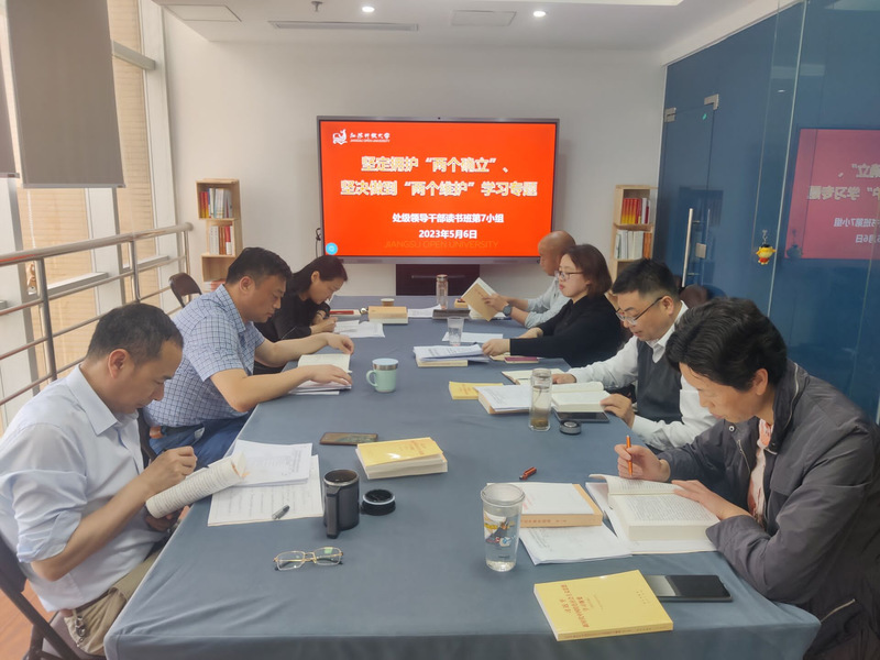 为切实把思想和行动统一到党中央决策部署上来,推动主题教育高标准、高质量开展,5月6日下午,学校处级领导干部读书班第七组学习贯彻习近平新时代中国特色社会主义思想主题教育第一次集中学习会在定淮门校区图书馆楼6-2会议室召开,本次学习专题为“坚定拥护‘两个确立’、坚决做到‘两个维护’”。教育学院党总支部书记罗殷主持会议,她传达了5月5日学校党建与思政工作会议精神,通报了本次主题教育的计划安排,强调学习的纪律要求。教育学院、纪委内设机构在校中层干部7位同志参加学习。