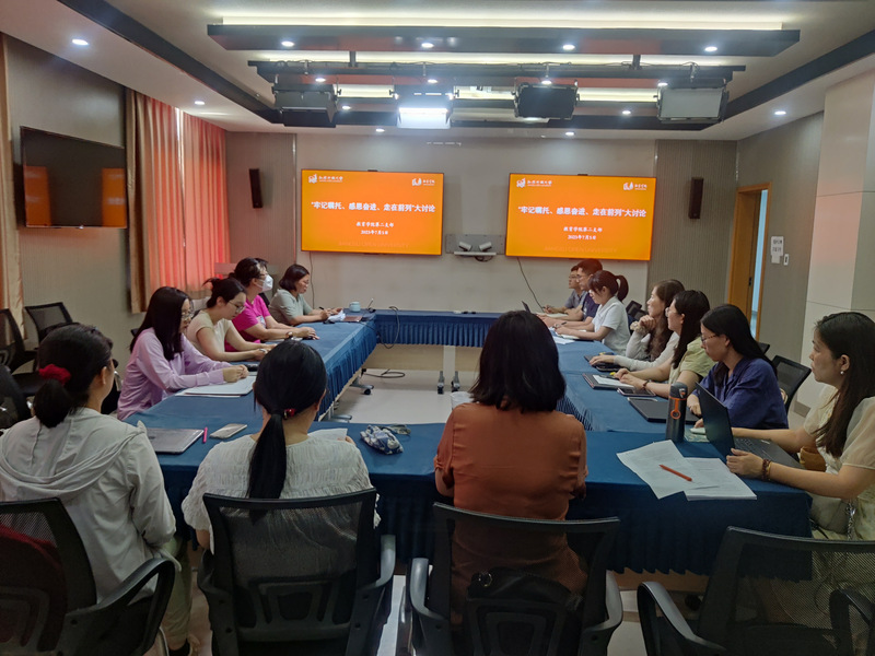 为扎实推进学习贯彻习近平新时代中国特色社会主义思想主题教育,更加深切感受党的创新理论的真理味道和实践伟力,教育学院党总支第二党支部于7月5日在定淮门校区图书馆楼612会议室开展“牢记嘱托、感恩奋进、走在前列”大讨论,会议由支部书记管玲俐主持。