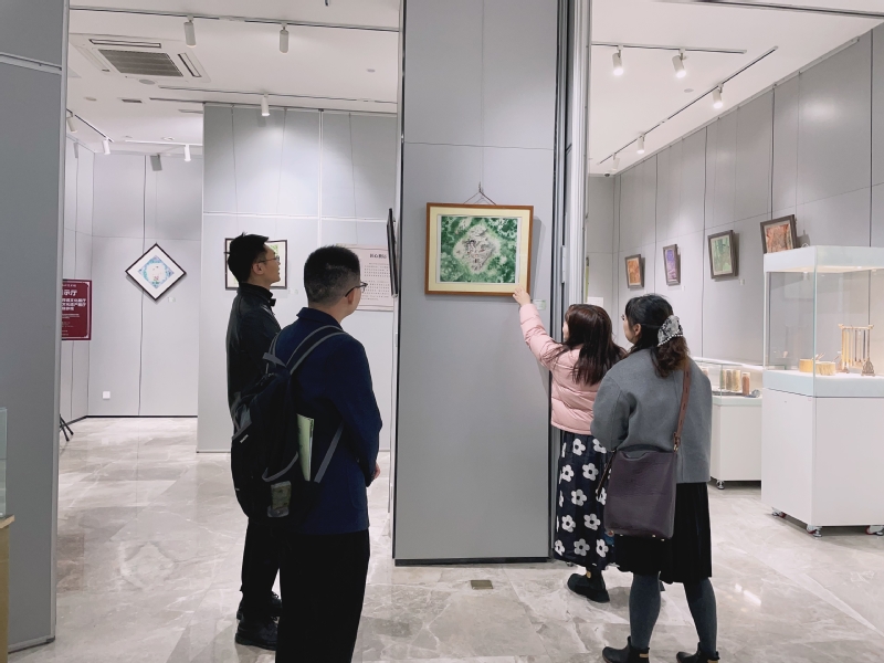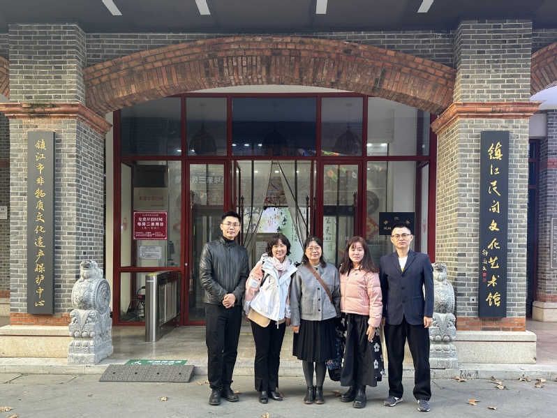 在寻觅探访西津渡古街之后,调研团队还参观了非物质文化遗产保护中心暨镇江民间文化艺术馆。在民间艺术精品展馆中,调研团队见识了剪纸、扎染画缋、铜板彩画、烙铁画、玻璃雕刻、蛋雕、根雕、陶塑、邮票拼贴画、竹编、竹笛等工艺的神巧;在白蛇传传说文化展示厅中的“水漫金山”四折幕影院体验到了“水漫斗法”的壮观场面,并从近百件实物作品和图文资料中感受到了“白蛇传传说”的文化魅力。