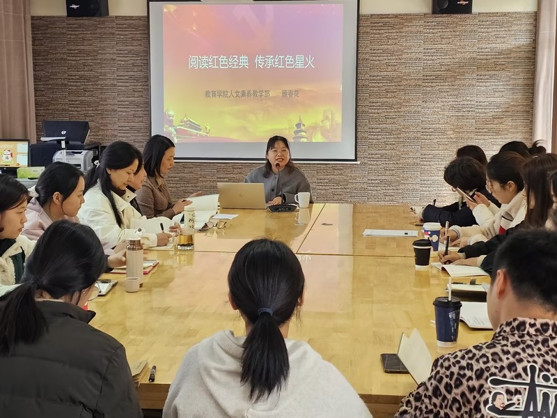 此次讲座的内容为“阅读红色经典 传承红色星火”,顾春花老师主要从红色文学经典的界定与特点、红色文学经典的创作内容与人物形象、红色文学经典塑造的价值观及在当下的引领等方面与各位教师进行了交流探讨。