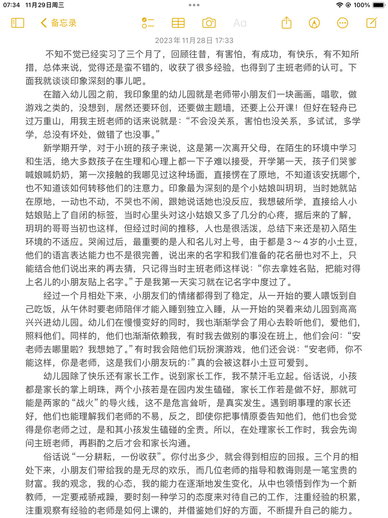为了实现自我价值,体现江苏开放大学学子的责任与担当,教育学院以集中实践和分散实践相结合的形式,积极动员开放学生参与专业实践。我院开放学生利用专业知识和特长,前往多所幼儿园和幼教机构,体会实践过程,增强自身本领,出色、圆满地完成了各自岗位的工作,实践结束后,大家都有不一样的收获和感悟,让我们一起来看看吧。