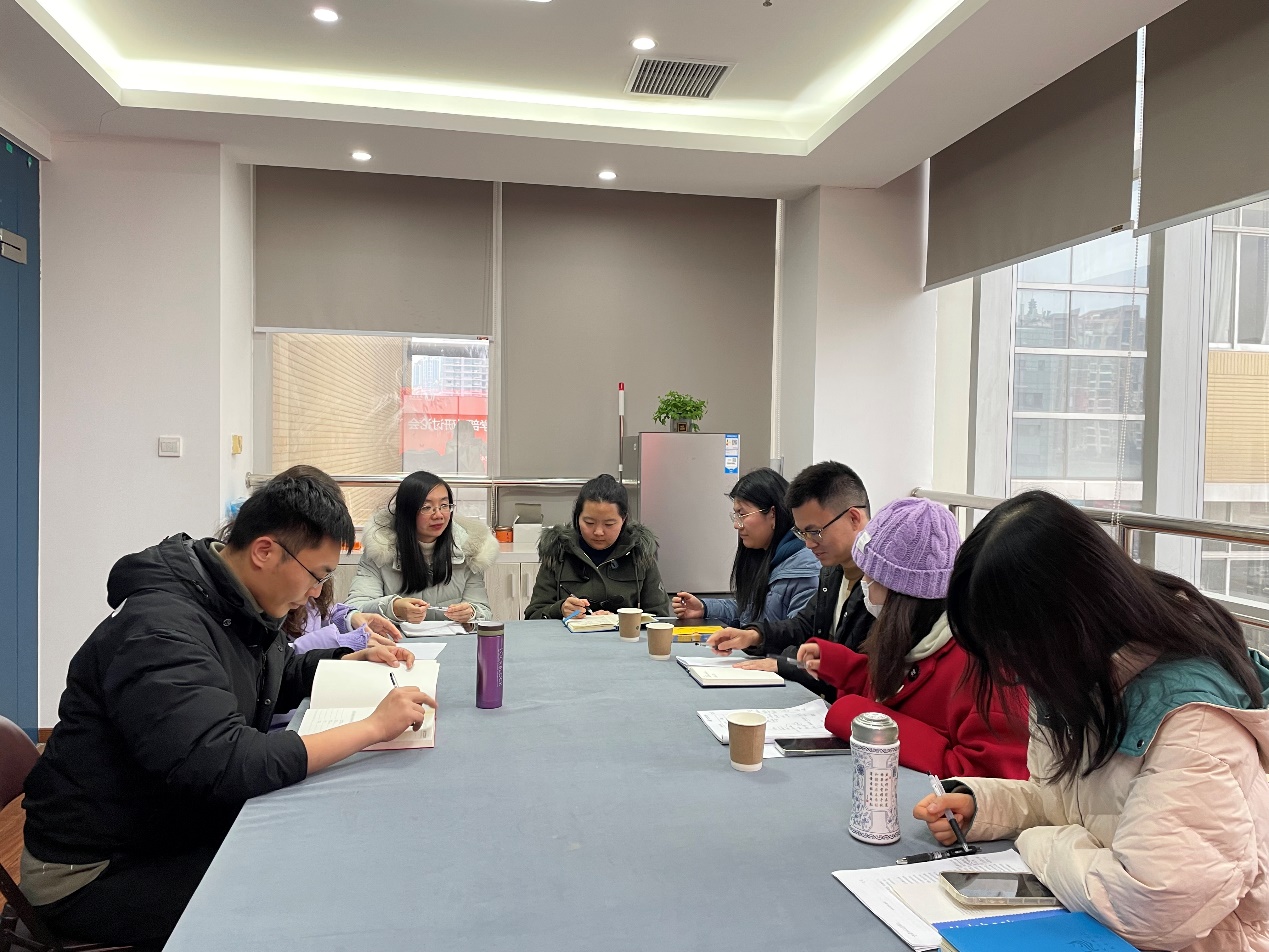 人文素养教学部党小组由万雯雯同志领学习近平总书记关于科技创新的重要论述,小组成员们发表学习感想。小组成员们结合自身科研情况,分享交流科研经验,商议拟定2024年度的科研计划。