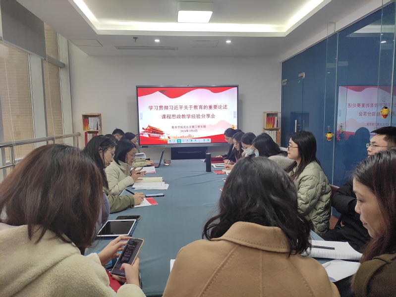 为落实立德树人根本任务,扎实推进课程思政建设,3月4日上午,教育学院党总支第二党支部在定淮门校区图书馆楼6-2会议室举办课程思政经验分享会。会议由支部书记管玲俐主持。
