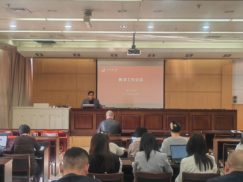 为进一步贯彻落实学校教学工作会议精神,提升学院教育教学质量,高质量完成本学期各项工作,2024年10月23日下午,教育学院2024年秋季学期教学工作专项会议在定淮门校区图书馆楼2-2阶梯教室召开。会议由学院副院长夏松主持,学院全体教职工参加会议。
