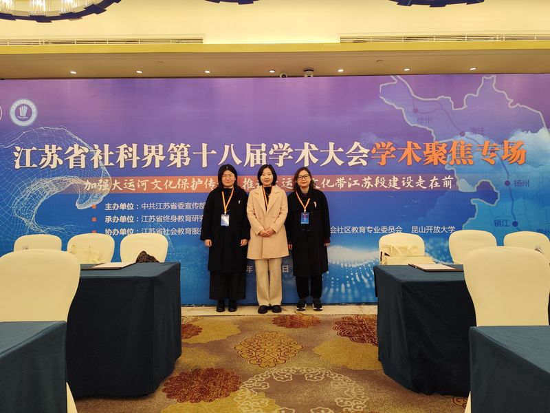 此次会议由中共江苏省委宣传部、江苏省社会科学界联合会主办,江苏省终身教育研究会承办,本次学术聚焦专场议题为“加强大运河文化保护传承,推动大运河文化带江苏段建设走在前”。团队成员上午学习了江苏省社科联党组书记张新科教授的《大运河文化中的英雄文化》;上海交通大学城市科学研究院院长刘士林教授的《千年运河焕新与未来运河已来》;江苏省社会科学院原党委书记、院长夏锦文教授的《悠悠运河水韵文脉——大运河文化带建设的江苏实践》等专题报告,从运河文学故事挖掘、运河文化遗迹保护利用、文化遗产立法保护等不同维度,了解了大运河文化的来龙去脉、传承保护及利用的情况。下午参加“大运河文化保护与传承”分论坛,通过不同学科背景的专家与发言人的汇报,进一步深入了解了各个专业对于运河文化的研究路径与丰硕成果。