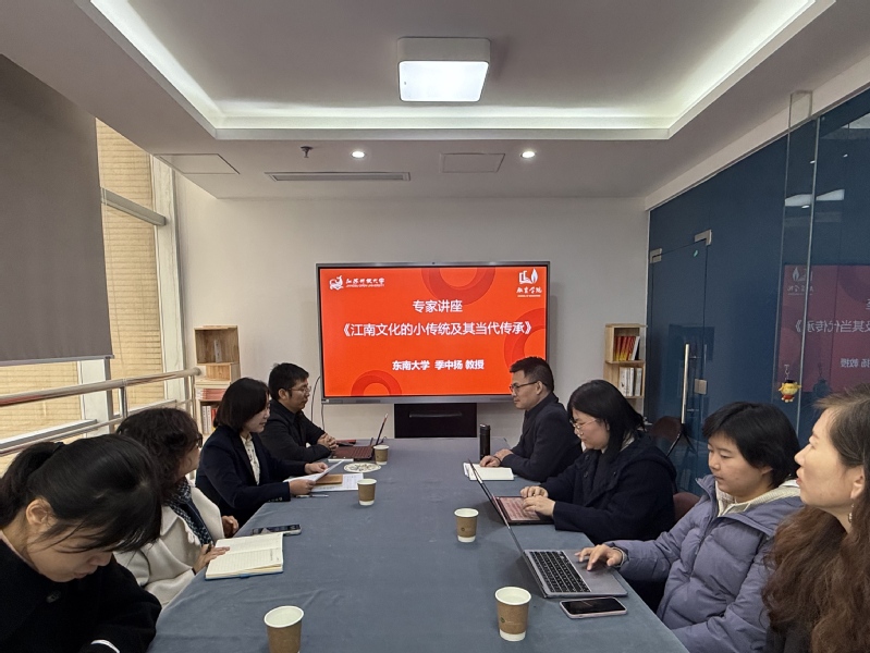 12月5日,教育学院特邀东南大学人文学院教授、江苏省民间文艺家协会副主席、南京市文联副主席、南京市民协主席季中扬开展题为《江南文化的小传统及其当代传承》的专题讲座。讲座由“江苏遗迹文学与文化研究”中心主任李春燕主持,人文素养教学部的教师参加了此次讲座。