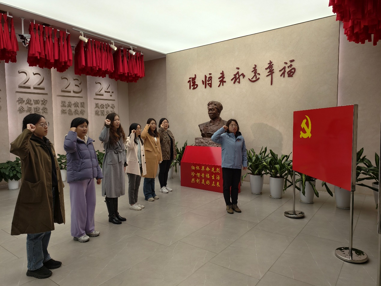 常州大运河铭刻着无数红色印记,涌现出众多红色文化代表人物,如“常州三杰”瞿秋白、张太雷、恽代英等。到达常州,党员教师们首先参观三杰纪念馆,寻访红色印记,汲取前进力量。在张太雷纪念馆,全体党员面向党旗,高举右手,在学院党总支书记罗殷带领下,重温入党誓词。