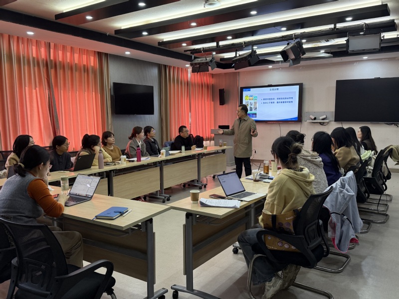 在学术报告环节,沈书生教授作了题为《数智赋能教育发展:从公平到质量》的专题报告。他从教育生态与实践变革等多个维度,深入阐释了数智技术对教育公平与质量提升的双重驱动作用,并结合典型案例,剖析了人工智能等技术在课堂教学、教育评价与资源分配中的创新应用。报告过程中,沈教授多次与在场教师互动交流,就技术如何真正服务于育人本质等问题展开热烈讨论,现场气氛活跃。