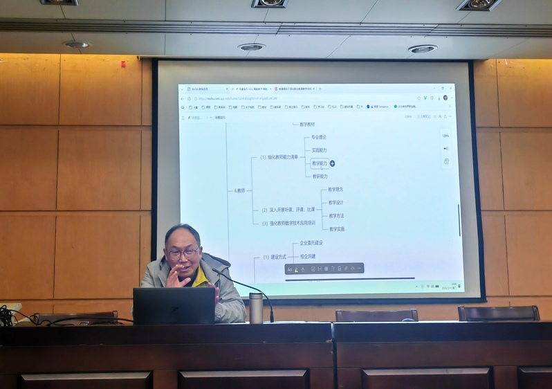 为进一步提升教职工数字化素养与技能水平,帮助教职工深入了解人工智能技术在教学与办公领域的应用,2026年3月11日下午,教育学院在定淮门校区二楼阶梯教室邀请安徽理工大学教授倪彤以“场景指引·AIGC·赋能教学·智能办公”为主题,为全院教职工开展专题讲座。