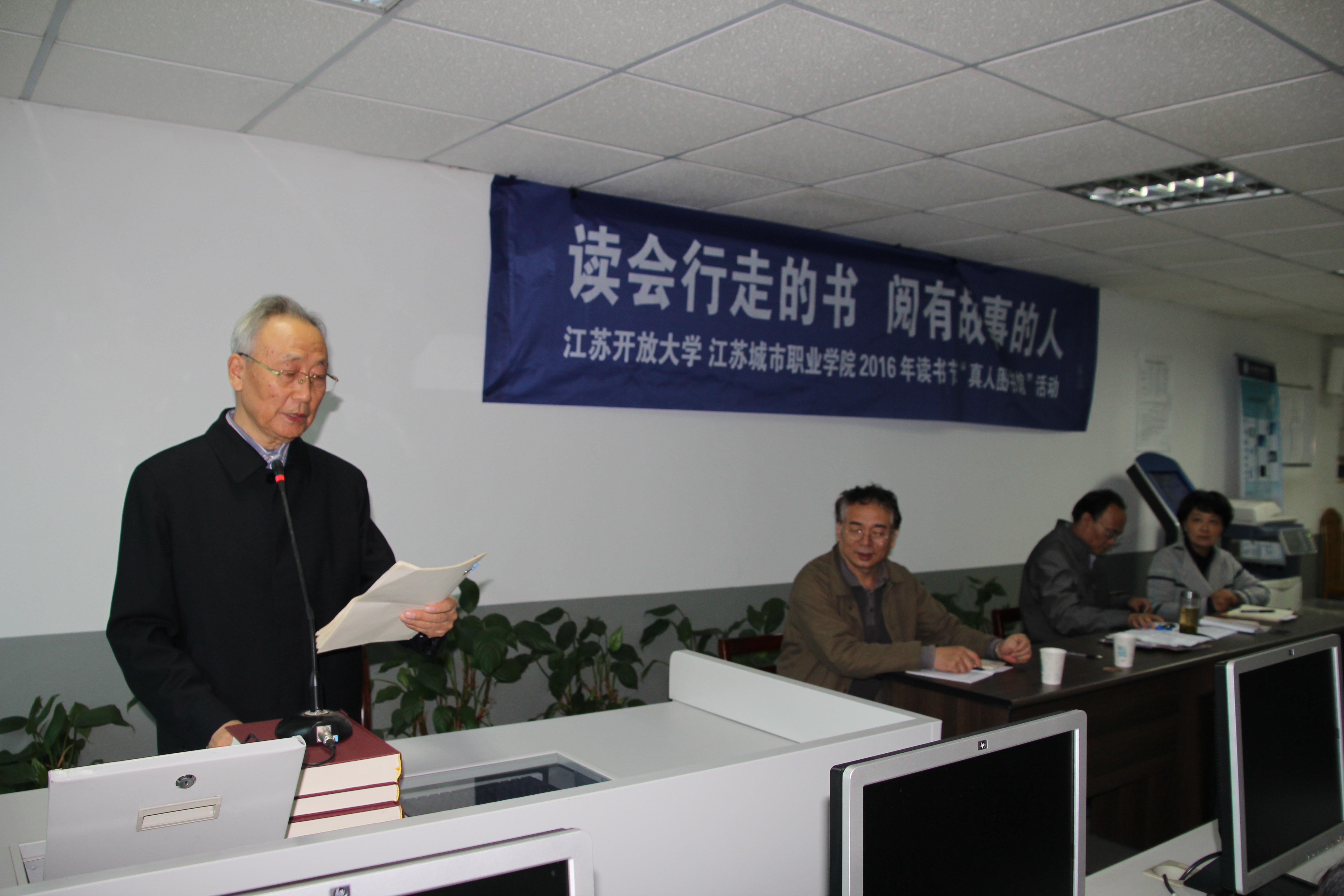 本次活动的两位“真人书”是我校通识教育学院院长、物理学博士,束正煌教授;享受国务院政府津贴专家,曾经担任江苏广播电视大学党委书记的张存库教授。他们分别以“阅读·规划·人生”和“读书育人,文化兴校”为主题,讲述了各自在学习、工作中的经历与感悟。参加本次活动的读者在聆听了精彩的人生故事后,与“真人书”展开了积极真诚的互动、交流、对话,读者们为两位“书籍”坚韧执着、奋发向上的人生经历所感动,也更加体会到“若要求知识,需从勤苦得”这八个字的深刻含义。