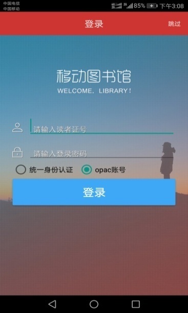 6、两种登录方式:1.统一身份认证 2.OPAC账号(一卡通账号,密码身份证后六位)。