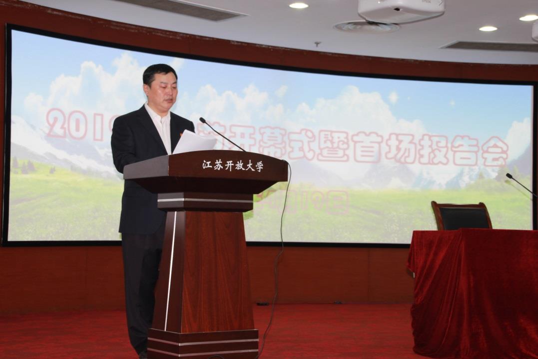4月19日,2019年江苏开放大学(江苏城市职业学院)读书节开幕式暨首场报告会在定淮门校区二楼报告厅举行。
