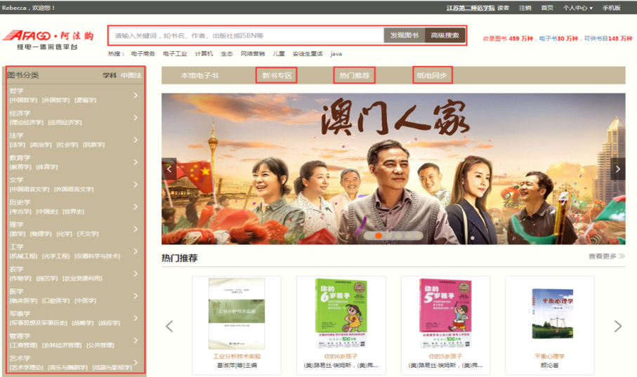 畅想之星阿法购平台收录电子书30万余种,图书58万余种。分别按照十三大类学科和二十二大类中图法详细分类,所有的电子书以及纸书都具有出版社授权,并推出了纸电一体化服务;同时,也提供以读者为中心的“你选书,我买单”PDA模式,大家一起来畅享阅读的快乐吧!