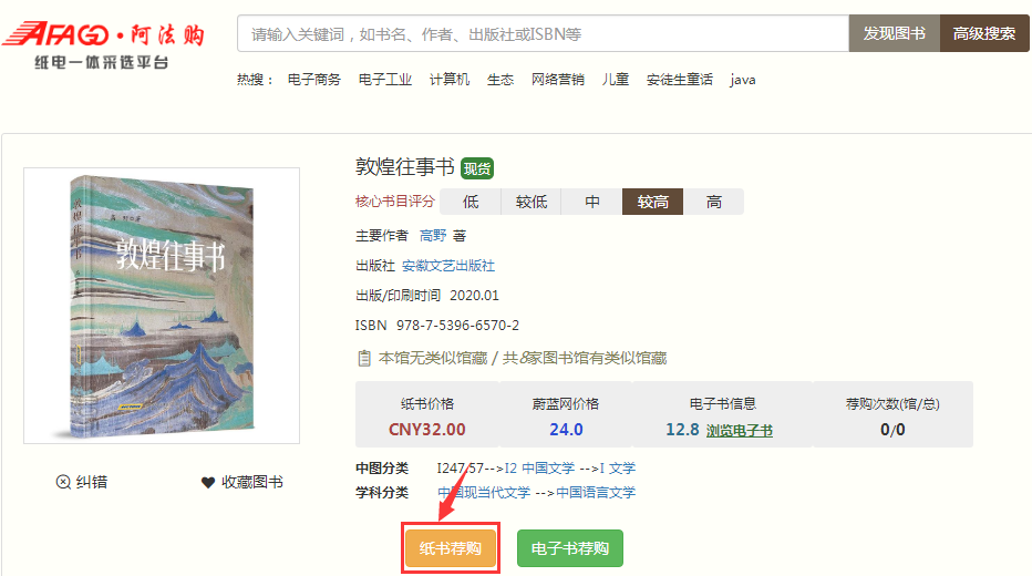 检索图书——点击纸书荐购——输入荐购理由——点击荐购纸书——荐购成功。