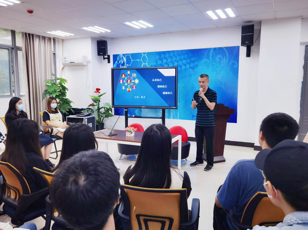 马克思主义学院副教授陆洋老师以“感谢自己的不完美”为主题,从“认识自己”、“接纳自己”“感谢自己”三个方面与师生畅谈工作生活中的压力与负面情绪,分享书中菁华,探讨情绪接纳的积极意义。在互动讨论环节,陆洋老师通过让学生自由选座、以自身经历开启轻松访谈等方式,拉近与学生们的距离,倾听他们的困惑,畅谈接纳“不完美的自己”的有效方法。