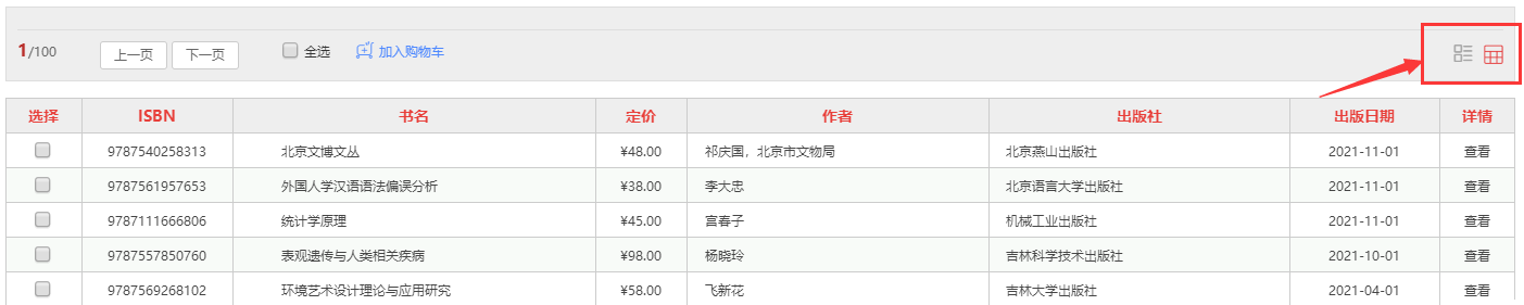 1.1、平台可按图书的出版时间、定价排序。也可按价格区间、出版时间段、重点图书【即图书馆关注的重点出版社】进行筛选。
