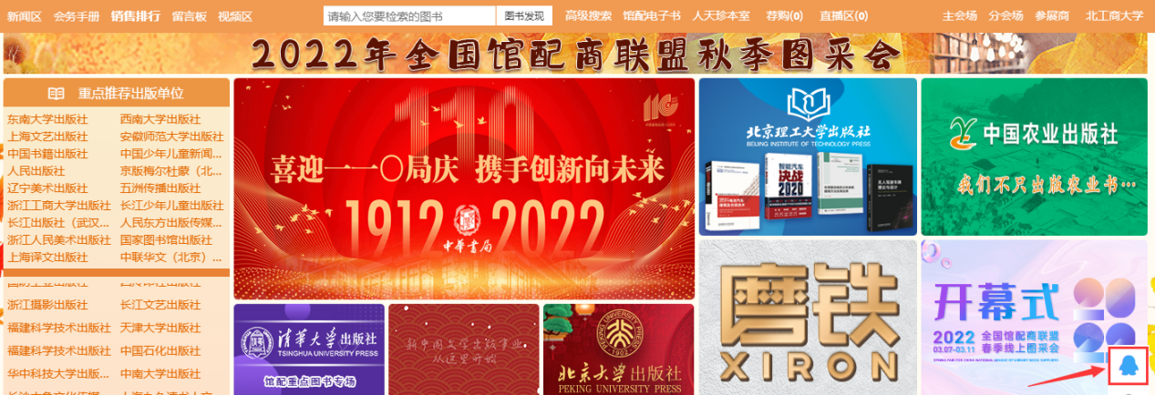 2022全国馆配商联盟秋季图采会于9月 13日—16日采取线上订购模式举行。图书馆邀请各位老师根据学习阅读、教学、科研需求线上荐购图书。